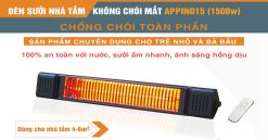 – Đèn sưởi không chói mắt dùng cho nhà tắm Appino 15 có thể sử dụng linh hoạt thích hợp cả với phòng khách và phòng ngủ vì không gây chói mắt.
