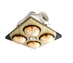 4 công tắc riêng biệt: 2 cho bóng sưởi, 1 cho quạt, 1 cho đèn chiếu sáng.
